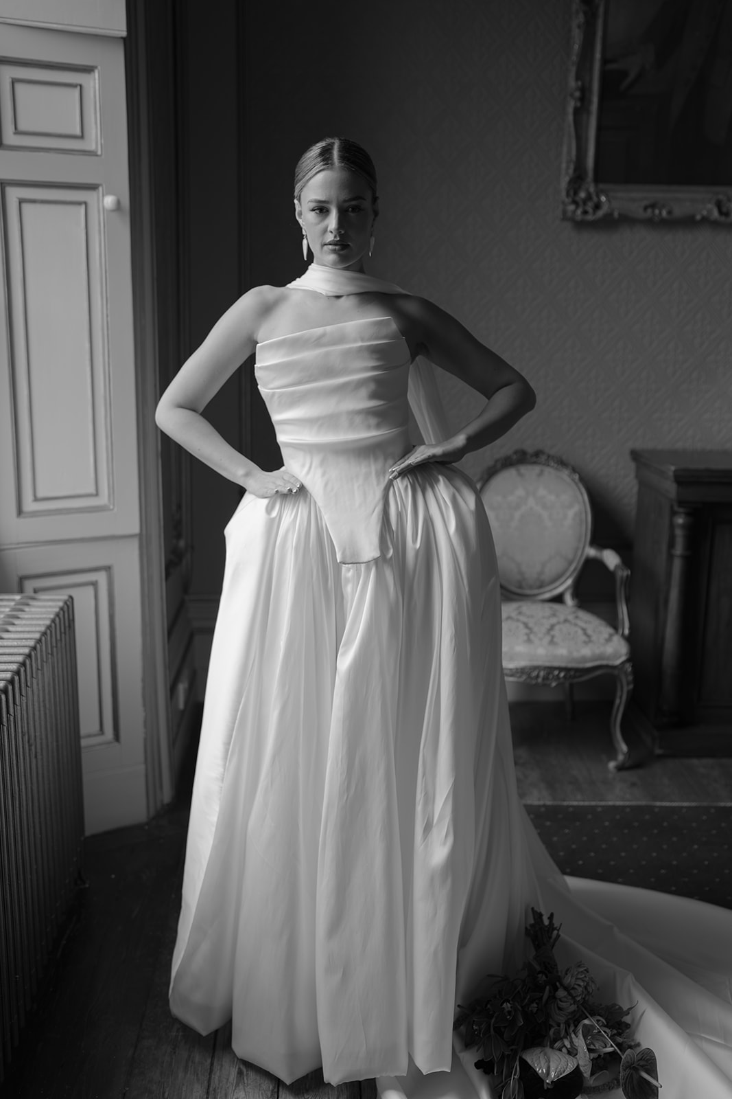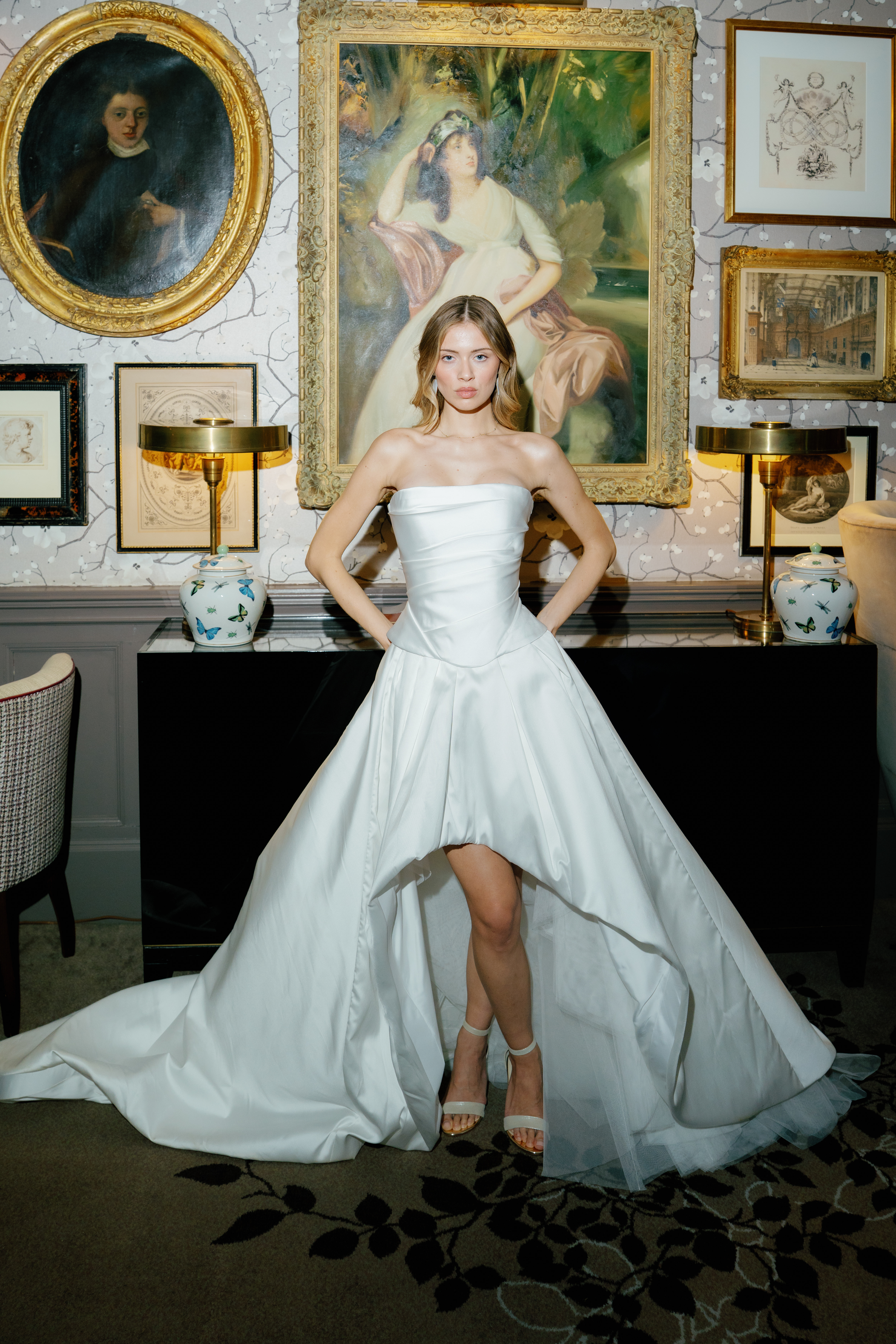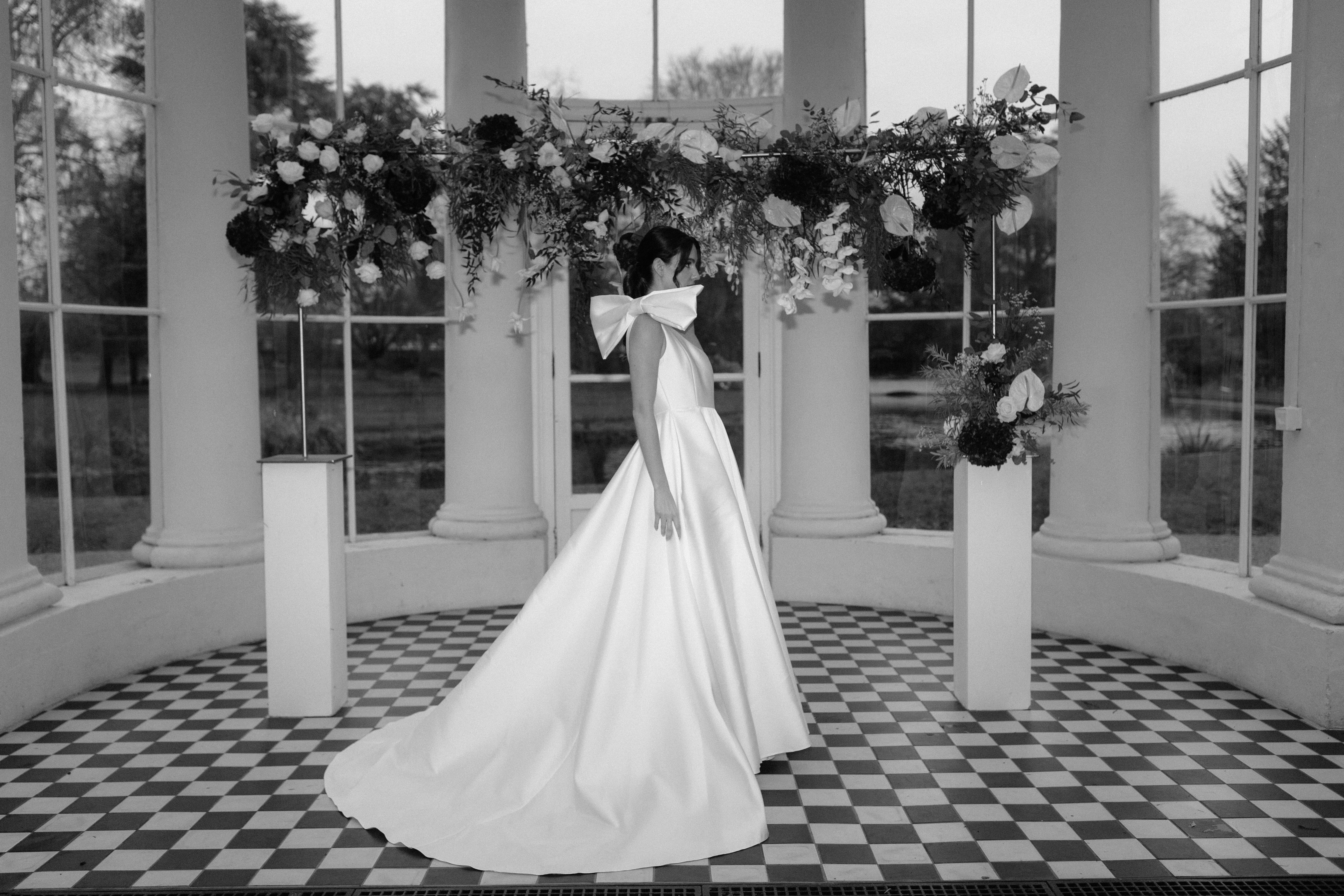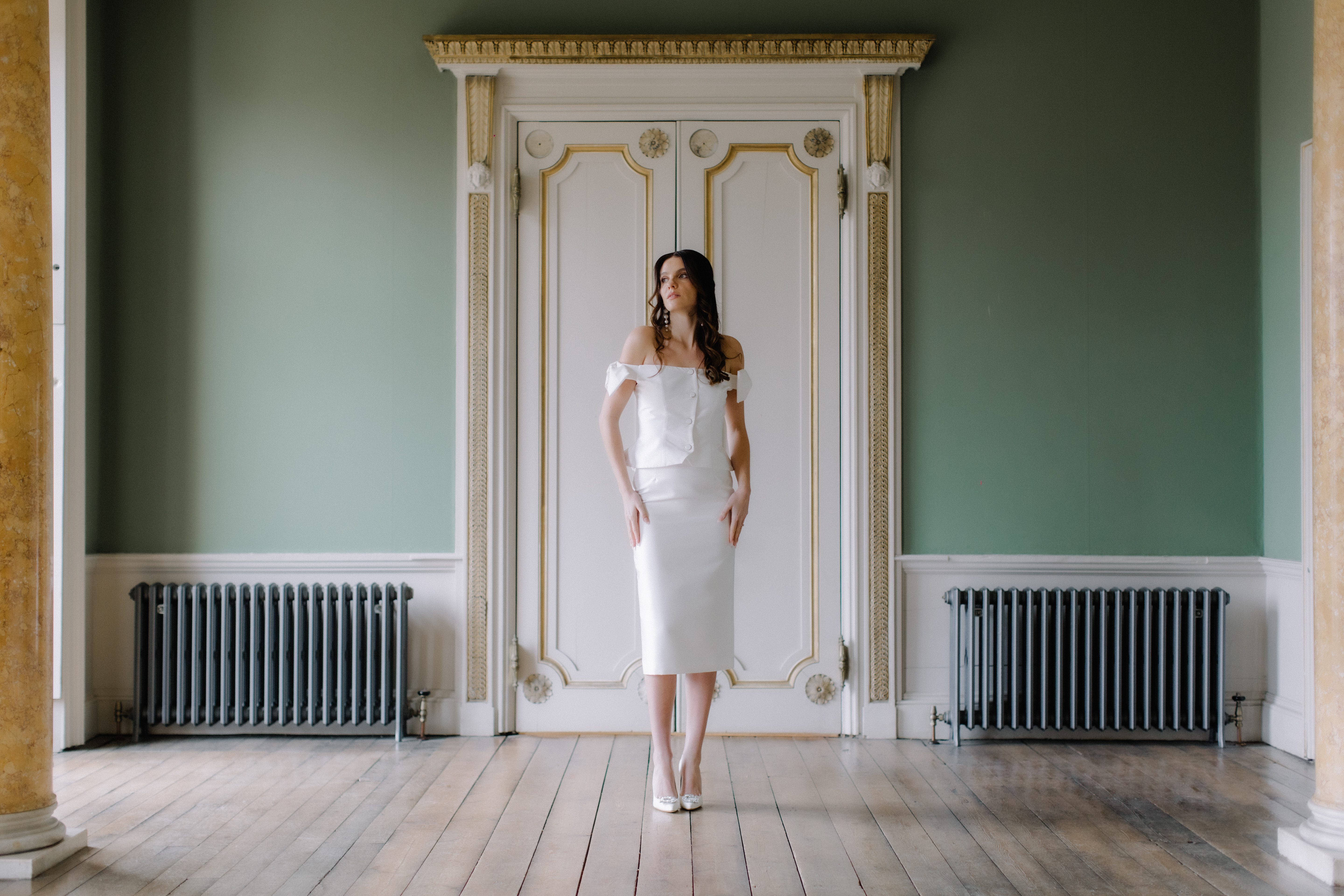 The bespoke process reflects Kate’s practice as a couturier: together, you have an in-depth exploration of personal style, then sketches are drawn, measurements taken and a calico toile – a couture mock-up – is created (to ensure an exacting fit) before the final garment is crafted from fine materials including silk crepe, duchess satin and Italian wool. Accessories, veils and headpieces can also be designed and made in-house, creating a cohesive wardrobe down to the last detail. The result? An entire suite of bridal looks, each individually tailored and styled with intention, ensuring longevity far beyond the ceremony itself. For brides who want their wedding wardrobe to reflect their authentic self, Kate Edmondson is where to go.
