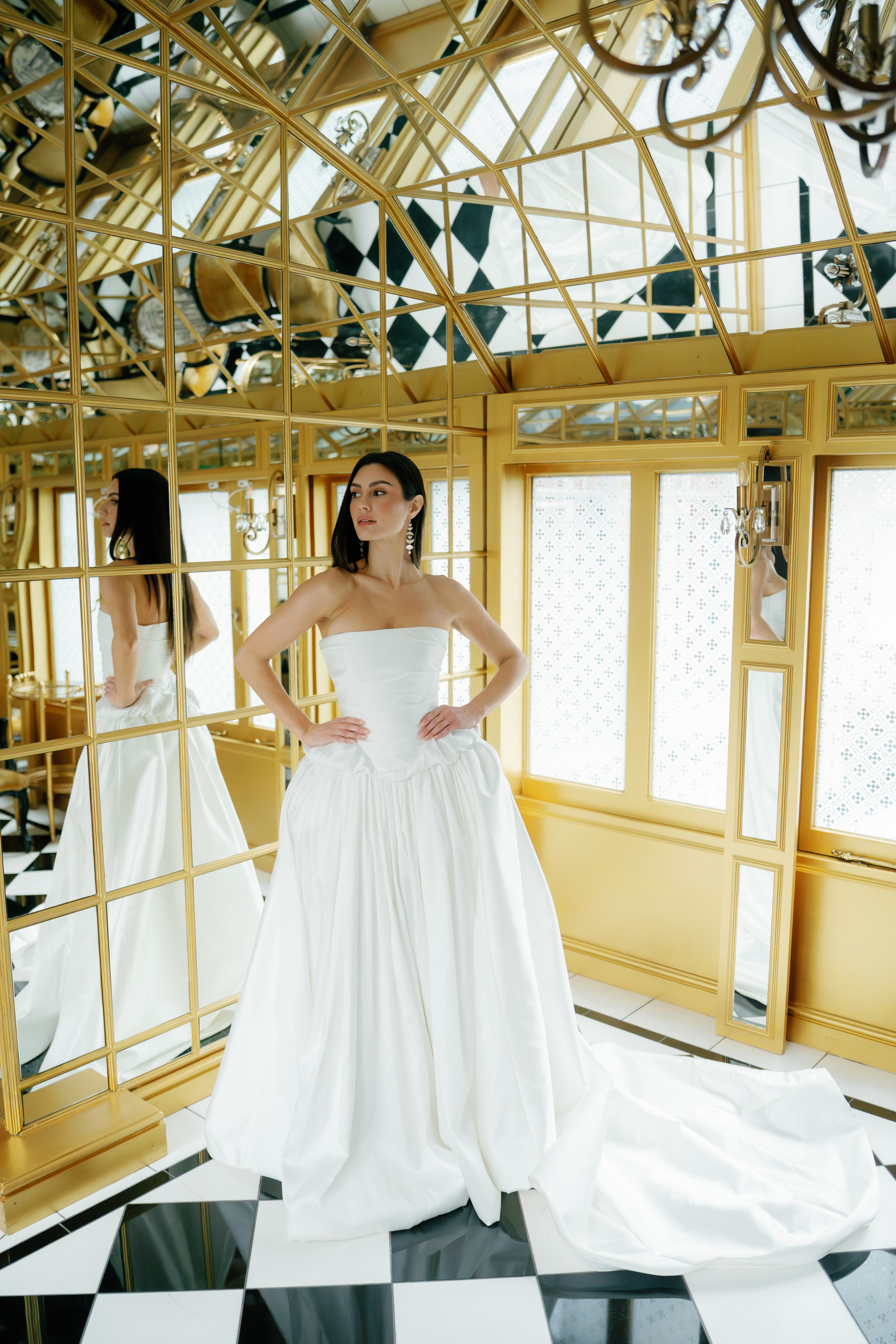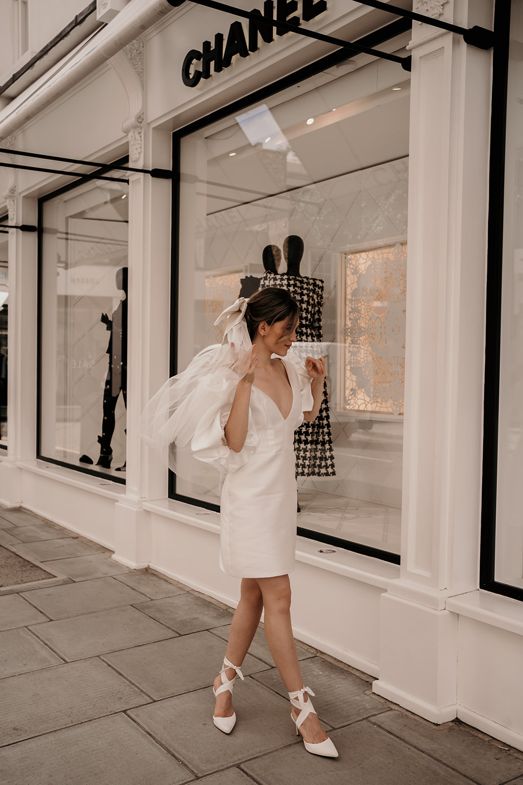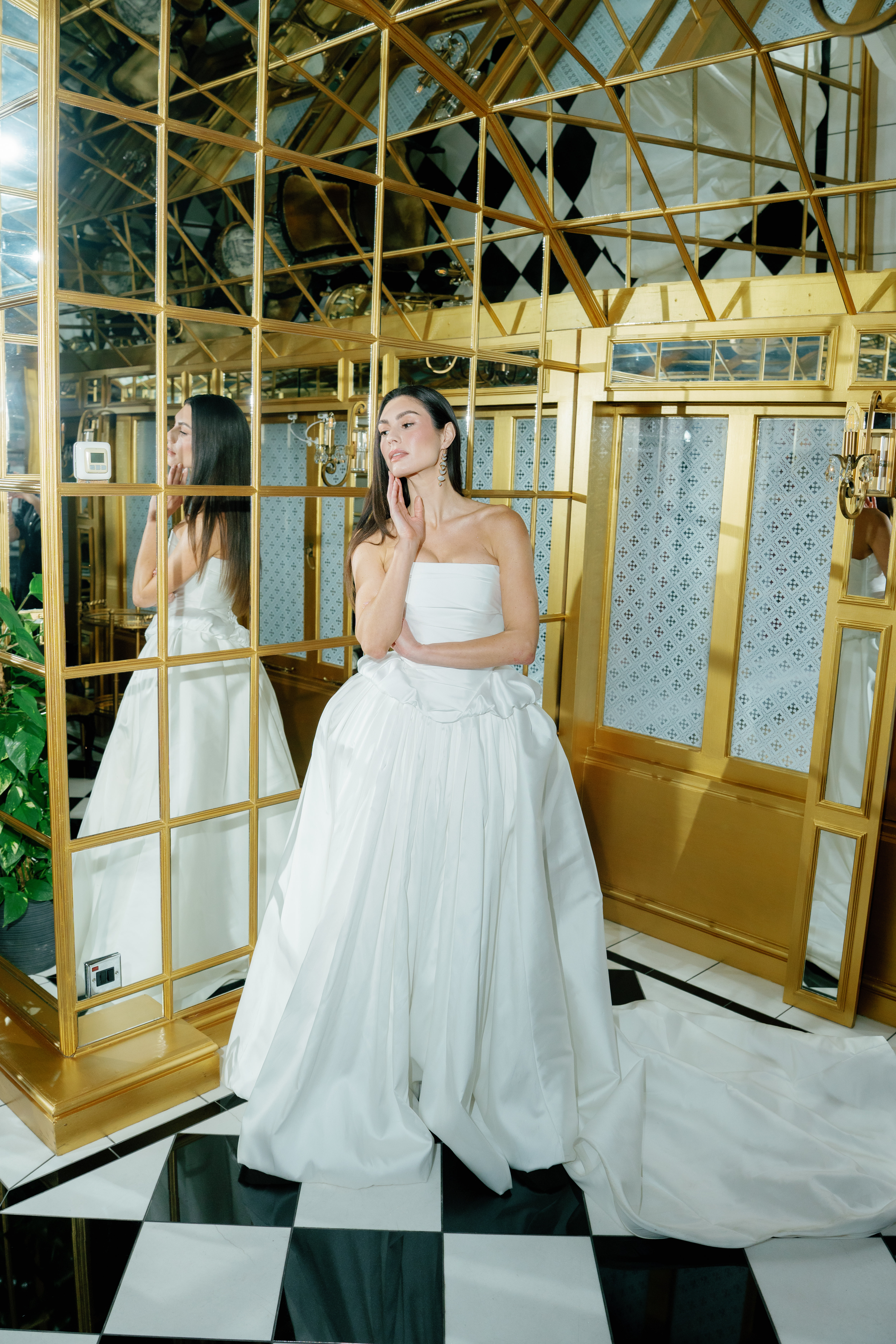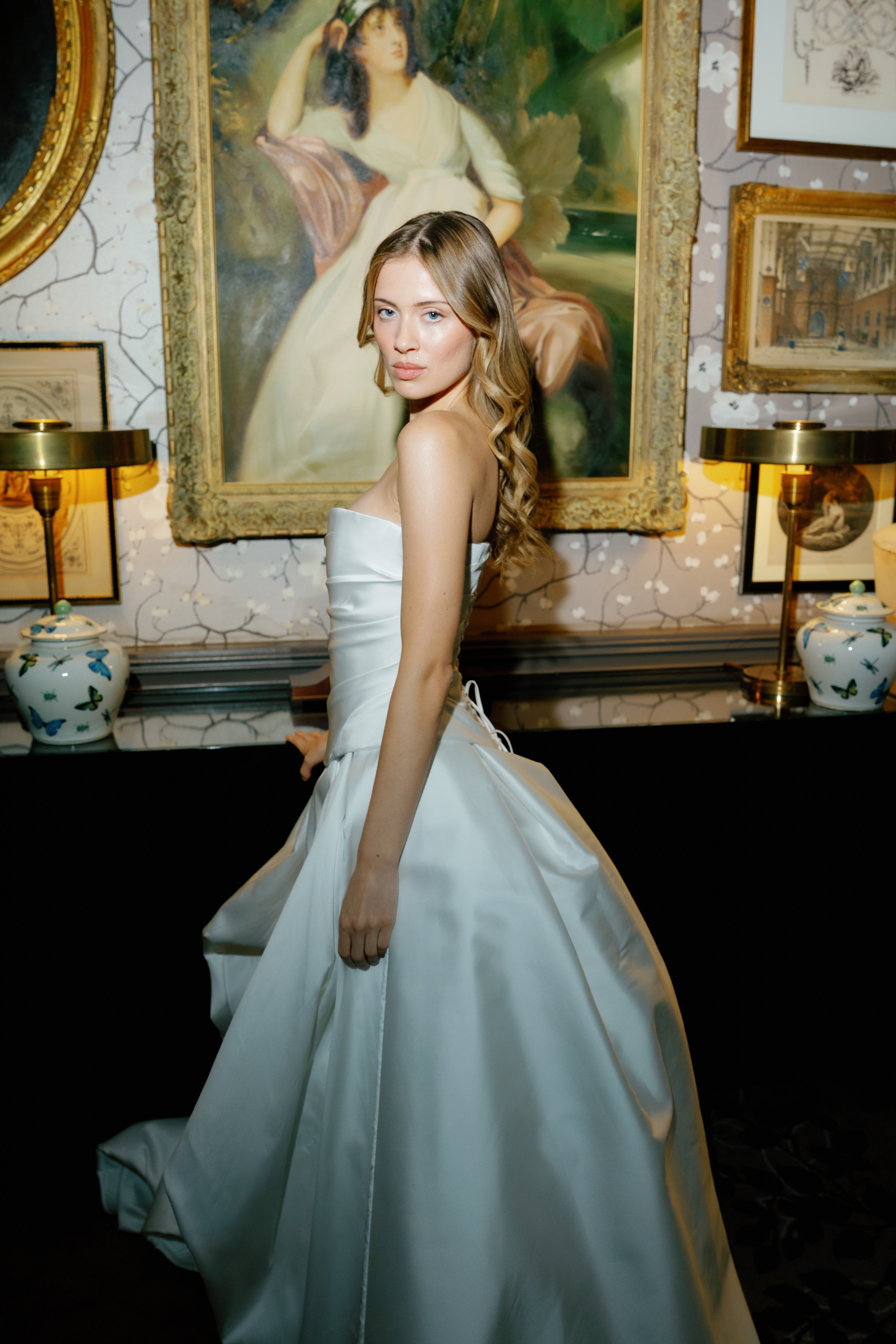 The bespoke process reflects Kate’s practice as a couturier: together, you have an in-depth exploration of personal style, then sketches are drawn, measurements taken and a calico toile – a couture mock-up – is created (to ensure an exacting fit) before the final garment is crafted from fine materials including silk crepe, duchess satin and Italian wool. Accessories, veils and headpieces can also be designed and made in-house, creating a cohesive wardrobe down to the last detail. The result? An entire suite of bridal looks, each individually tailored and styled with intention, ensuring longevity far beyond the ceremony itself. For brides who want their wedding wardrobe to reflect their authentic self, Kate Edmondson is where to go.